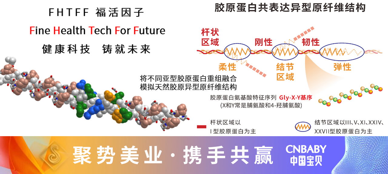 通过“中国宝贝CNBABY”这个化妆品子品牌,福莱明生物让世界看见中国成分的硬核科技力与卓越功效性。通过与中国科学院、华南理工大学等科研机构的深度合作,福莱明生物创造性的融合I型和III型胶原蛋白的保守结构域和辅助肽段,成功研发出符合人体皮肤黏膜组织I型III型胶原蛋白正常比例的一系列重组融合型胶原蛋白(FHTFF福活因子),一举打破技术壁垒,树立中国原研新标杆。