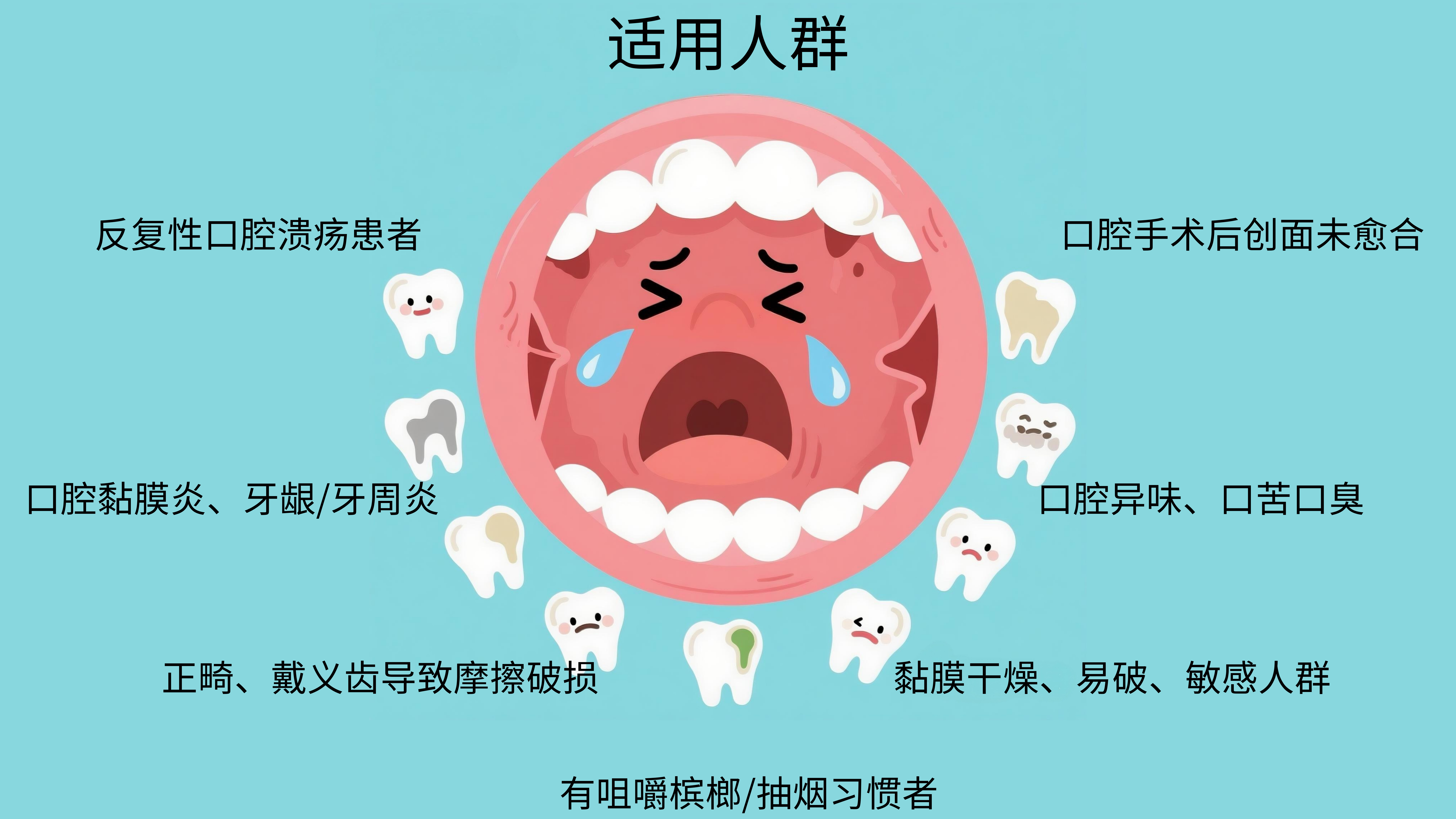 ✅ 口腔黏膜炎、牙龈炎、牙周炎人群;